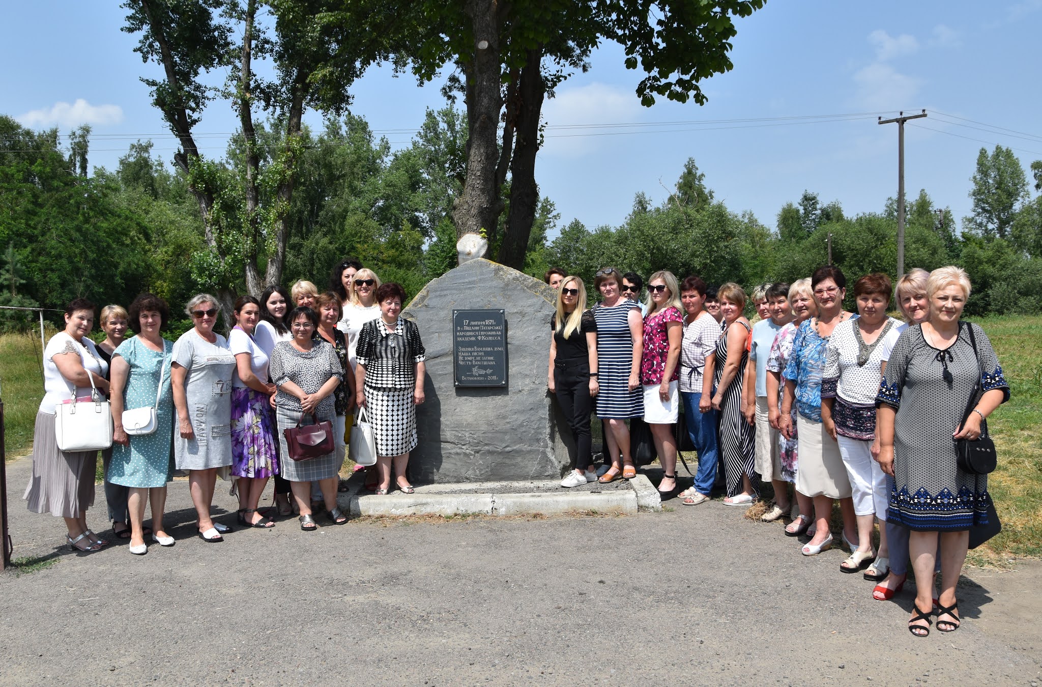 Фото колективу біля пам'ятного знаку академіку Ф.Колессі в с.Піщани